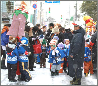 | Bondeko ぼんでこ fertility stick ![]() from Yokote, Akita. This stick is also called yome tataki 嫁叩き "hitting the bride" shuugiboo, shuugi boo 祝儀棒 "festival stick" bondekoboo, bondeko boo ぼんでこ棒 iwaiboo, iwai boo 祝い棒 "festival stick" bontenko ぼんてんこ Bontenko It is used to induce fertility, either in the bride of a home or for the fields. The thicker parts are made from special cuttings and shavings of wood. The use of this stick is very old in the Yokote region. It was sold on the first festival for the deity Bonten, hence the name. ![]() Bonten Hoonoo Sai 梵天奉納祭 Festival dedicated to Bonten 三所神社梵天奉納祭 at the shrine Sanjo Jinja 三所神社. . Bonden Festival in Akita 梵天祭り. ::::::::::::::::::::::::::::::::::::::::::::::::::::::::::::::::::::::::::::::::::::::::::::::::::::: Bonten Sticks ぼんてん sticks to represent Bonten ![]() The Bonten Festival is held at the shrine Asaoka Jinja 旭岡神社 on February 17 (it used to be the 17th of the first lunar month) and has a history of more than 250 years. In the local dialect, it is called "Bonden matsuri". bonden is a form of a ritual wand (gohei 御幣) for Shinto ceremonies (and thus not related to the deity Bonten, this mix-up came later). On the day before the festival, there is a parade through town with a concours to win the most spectacular bonden. Groups from all wards of the city and groups of craftsmen and businessmen compete with their bonden. Young men blow the conch and shout: joyasa joyasa ジョヤサ、ジョヤサ. They carry the bonden and balance it on a strap around their bodies, swinging it high in the air before the shrine hall, before offering it to the deity. The bondeko boo ぼんでこ棒(祝儀棒) ![]() is in fact not related to the above festival, but for some reason has now been sold in stalls too. This ceremonial stick is only about 40 cm long and made from white wood of willows or a local tree called koshiabura (Acanthopanax sciadophylloides). The wood is cut in a special way to produce shavings for the thicker parts (kezurikake shijimu 削り掛け縮). This iwaiboo has been used in many parts of Japan in rituals to pray for children (kodakara 子宝) and a good harvest. source : 民芸館 . . . CLICK here for Photos of Asakoa shrine ! ::::::::::::::::::::::::::::::::::::::::::::::::::::::::::::::::::::::::::::::::::::::::::::::::::::: ![]() source : gangu akita ::::::::::::::::::::::::::::::::::::::::::::::::::::::::::::::::::::::::::::::::::::::::::::::::::::: observance kigo for the New Year yome tataki 嫁叩 よめたたき, 嫁たたき hitting the new bride ..... yome tsutsuki 嫁つつき(よめつつき)、okatabuchi 御方打(おかたぶち) ..... harame uchi 孕め打(はらめうち, はらみ節供 Hitting the young bride on the bottom with a lucky wand, wishing for a pregnancy. mizu iwai 水祝, 水祝い, みずいわい sprinkling the new couple with water ..... mizukake iwai 水掛祝(みずかけいわい) ..... mizu abise 水浴せ(みずあびせ) .....mizukake burumai 水掛振舞(みずかけぶるまい) January 14 . WKD : The New Year . ................................................................................. kayuzue 粥杖 (かゆづえ) "rice gruel stick" ..... kayu no ki 粥の木(かゆのき) ..... kayuki 粥木(かゆき) fukuzue 福杖(ふくづえ)lucky stick ..... iwai boo、祝棒(いわいぼう)"festival stick" This stick was used to stir the rice gruel for January 15 celebrations. It could be used to hit a woman on her behind with the wish for fertility, when this stick was symbolizing the male organ. The custom is still practised in some rural mountain areas. . Rice gruel and KIGO shoofuku boo 招福棒 stick to bring good luck . Folk Toys from Gifu . ::::::::::::::::::::::::::::::::::::::::::::::::::::::::::::::::::::::::::::::::::::::::::::::::::::: . Reference . ::::::::::::::::::::::::::::::::::::::::::::::::::::::::::::::::::::::::::::::::::::::::::::::::::::: fertility needed to rebuild Tohoku - bondeko stick . Japan after the BIG earthquake March 11, 2011 |